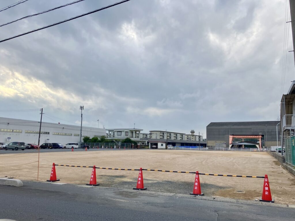 仮囲いは高さがあり、外からは様子を窺うことができない様子でした。しかし、時折風が吹き養生幕がめくれると、敷地内は工事の最中の模様…。