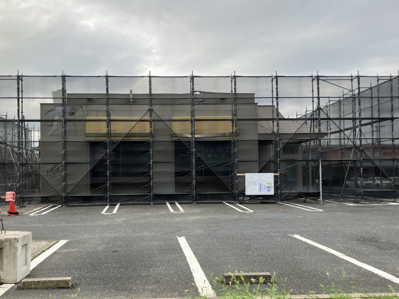 旧店舗からわずか徒歩5分程の場所に移転された「マクドナルド宇部厚南店」。そして7月19日(土)、久しぶりに旧店舗前を通りすがると、店舗全体は養生幕で囲われていた他、上部にあった看板は既に外されているようで、少し淋しさも感じられますね…。