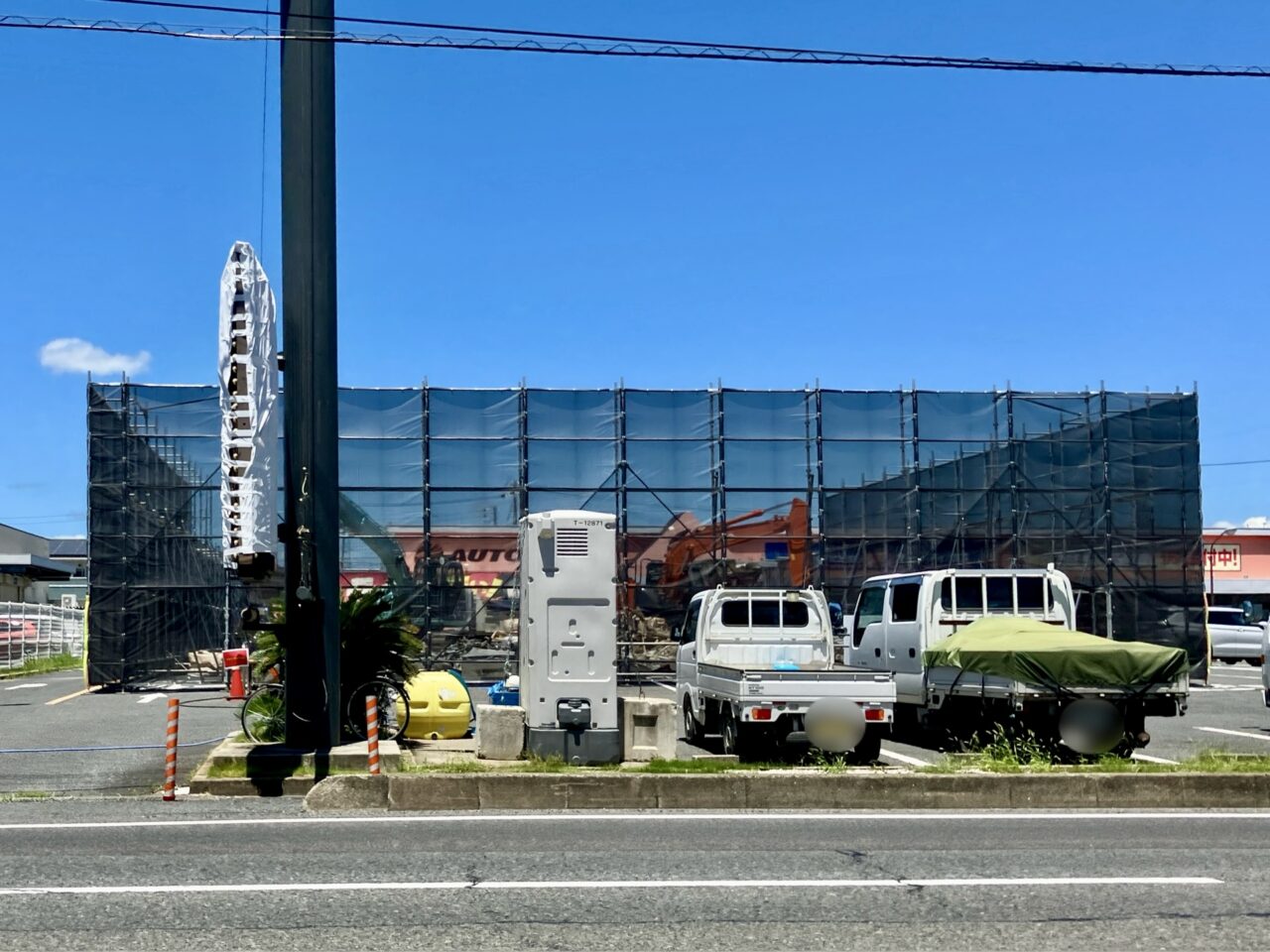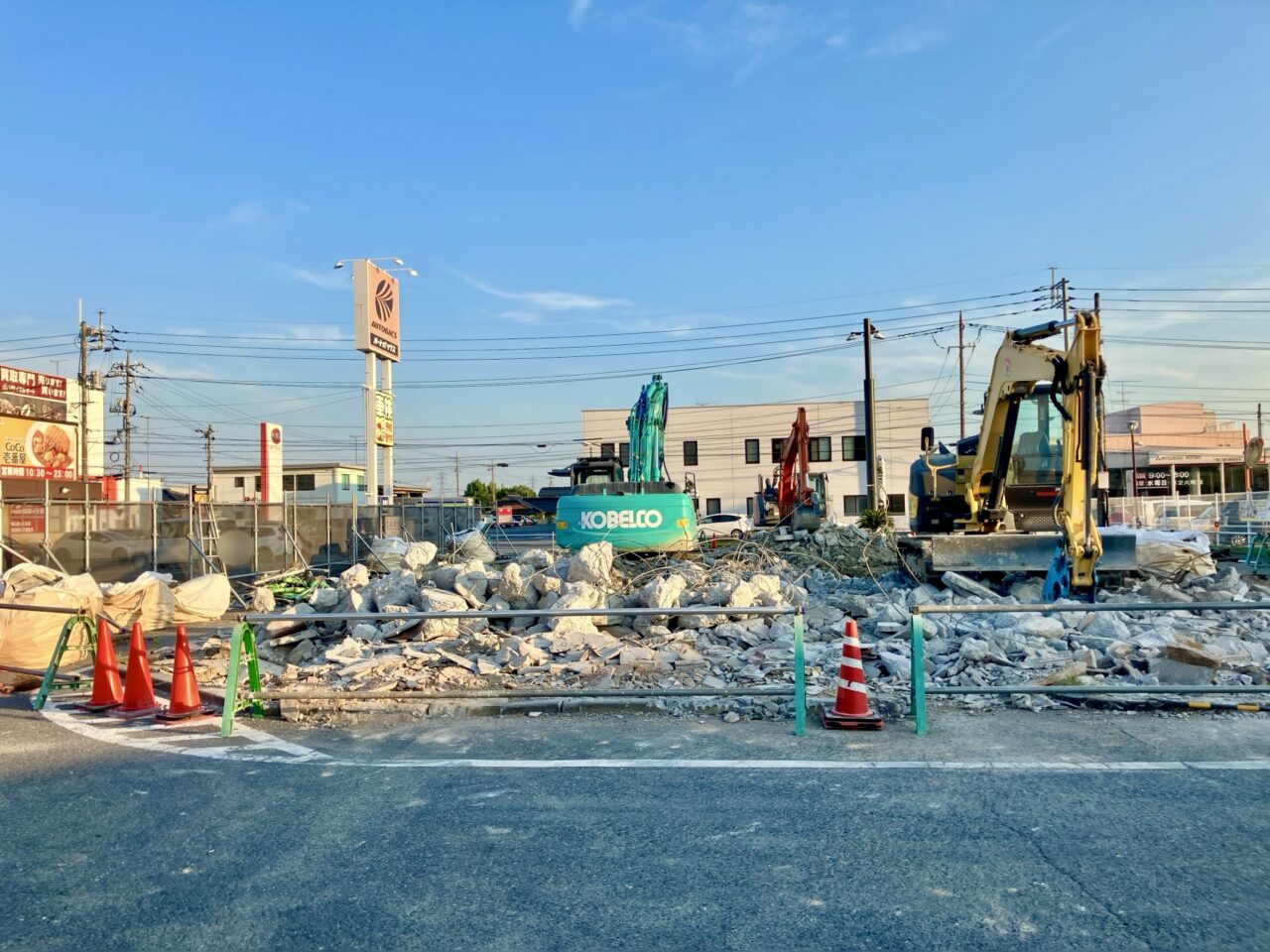 そして…わずか5日後の24日(木)には、なんと旧店舗の解体作業が行われていました。また、前回訪れた際には気がつきませんでしたが、ポール部分の看板もすっかりと覆われているようでした。
