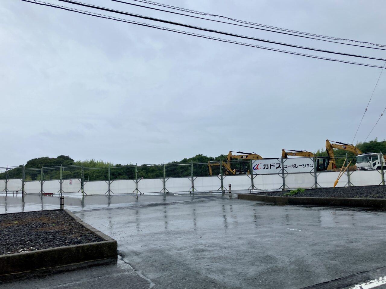 なんと、施工中の敷地には大きく仮囲いが施されていました。敷地内には複数の工事車両が停まっており、工事の最中のよう…。