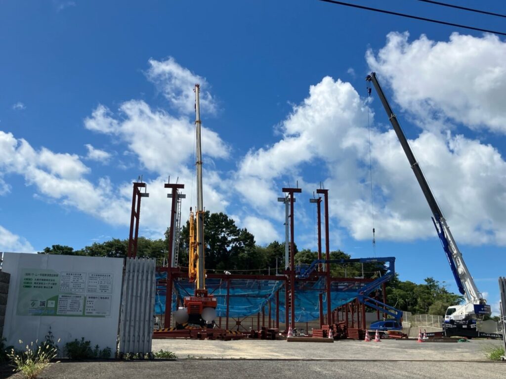 前回訪れてみると、敷地内は作業の最中のようで、クレーン車による大掛かりな作業などが行われていたようです。さらに大きな骨組みも見えてきますね!