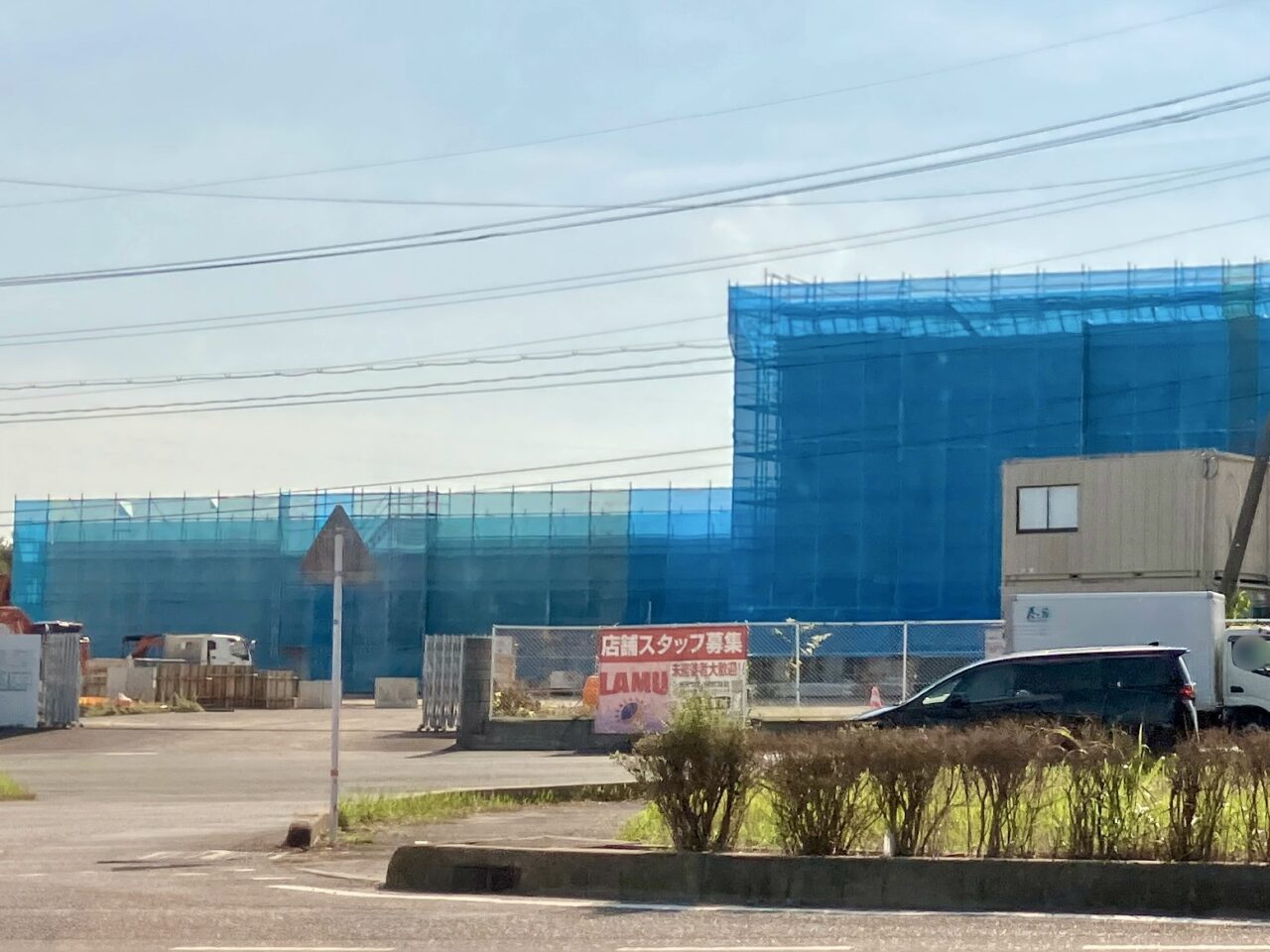 そして、離れた場所から見てみると、敷地の大きさをますます感じられます。お店の中では一体どんな商品と出会えるのでしょうか。楽しみですね!待望のオープン予定まであとわずか。ますます注目を集める「(仮称)ラ・ムー宇部店」の今後も目が離せません。