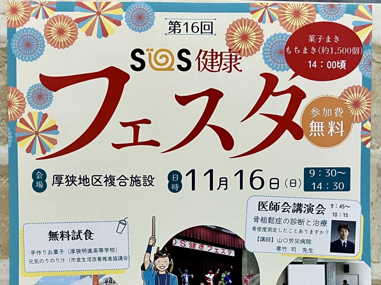【山陽小野田市】健康について楽しく学べる「第16回SOS健康フェスタ」が、明日(16日)厚狭で開催するそうです。