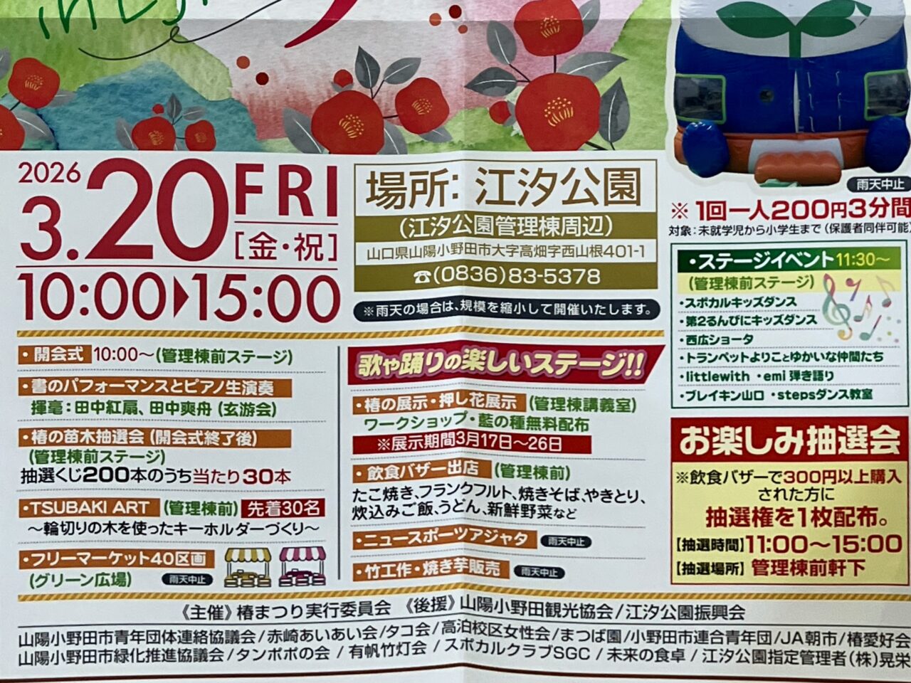 【山陽小野田市】もうすぐ三連休!初日の3月20日は江汐公園で「第34回椿まつり」開催。