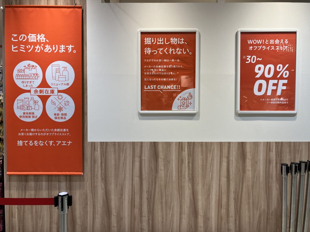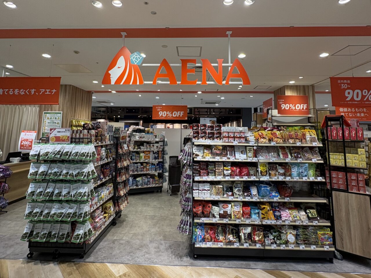 「捨てるをなくす、アエナ」その想いには、環境への大切さが込められています。廃盤商品やパッケージリニューアルなどの余剰在庫に悩むメーカーさんと繋ぎ、オフプライスが叶えられているそうです。